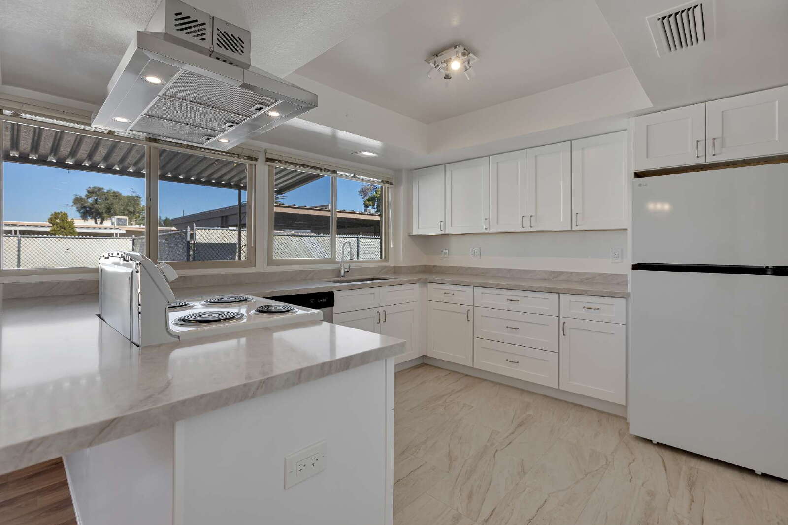 This is a completely remodeled charming townhome with two covered parking spaces adjacent, a storage room, and a large covered patio. It offers an open floor plan with laminate wood-look floors and gracious-sized bedrooms. The kitchen is open to the great room with larger electric cooktop. Bathrooms are good-sized with walk-in shower in Master Bedroom. Guest parking is available on the street right out front for great convenience. Two car private carport. Close to the 101 and Old Town!