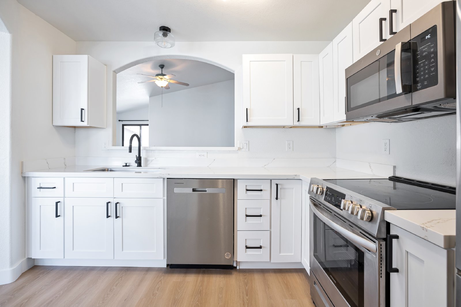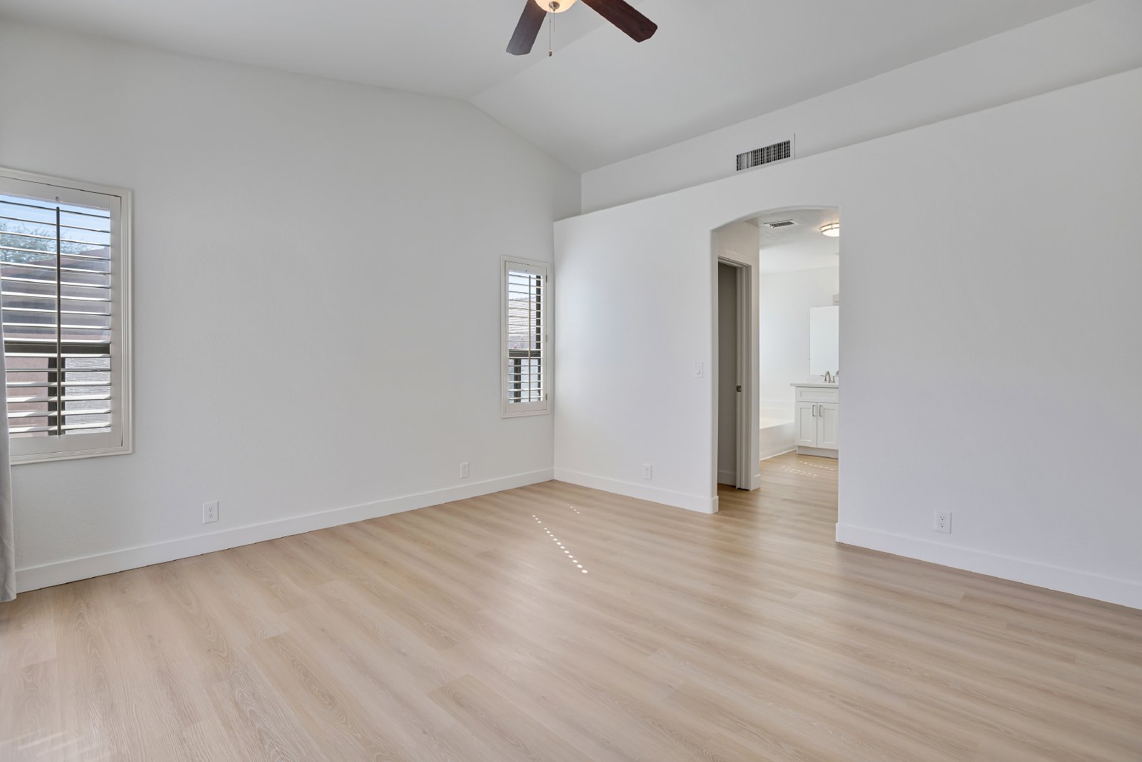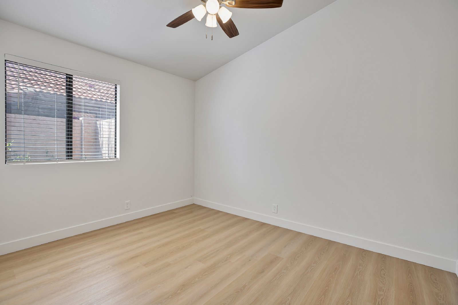 The home is a three bedroom/two bath with a two car garage and has been completely remodeled with new flooring, appliances, paint and cabinetry. There is a large great room, separate dining area and a small yard with artificial turf. The community is gated and there is a community pool, greenbelt and a sand volleyball court. This special home will not last at this price! Applicants must have minimum 625 FICO Score and 2.5 X rent for gross monthly earnings.