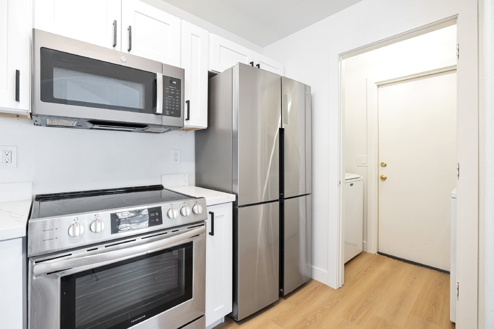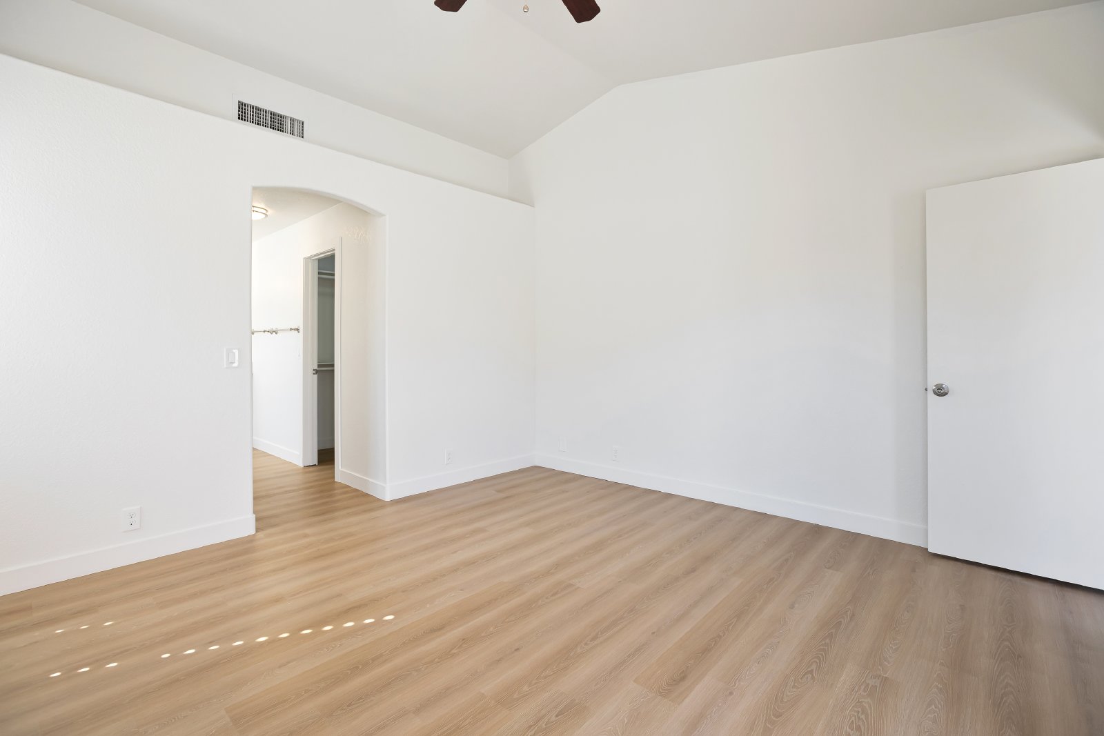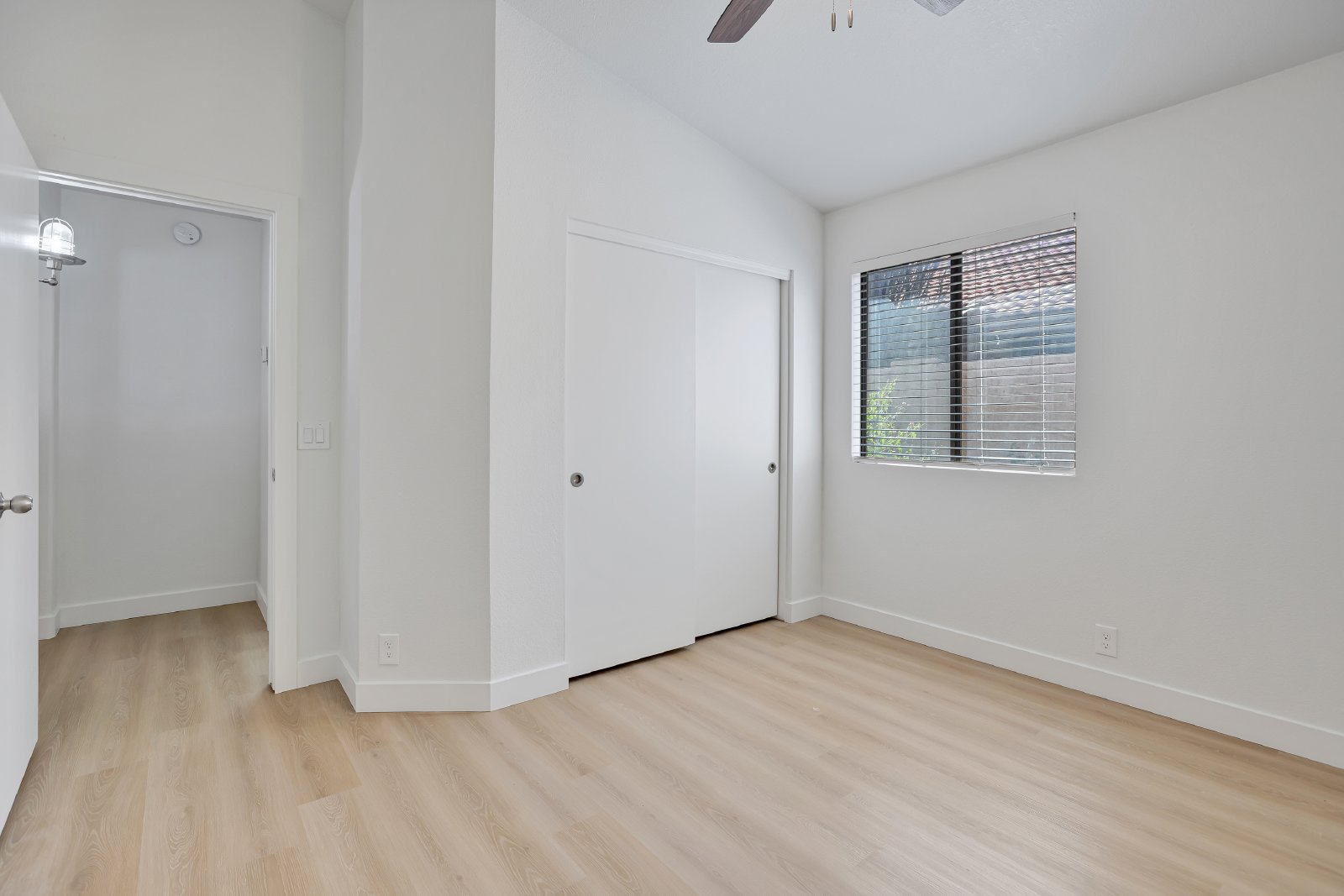 The home is a three bedroom/two bath with a two car garage and has been completely remodeled with new flooring, appliances, paint and cabinetry. There is a large great room, separate dining area and a small yard with artificial turf. The community is gated and there is a community pool, greenbelt and a sand volleyball court. This special home will not last at this price! Applicants must have minimum 625 FICO Score and 2.5 X rent for gross monthly earnings.